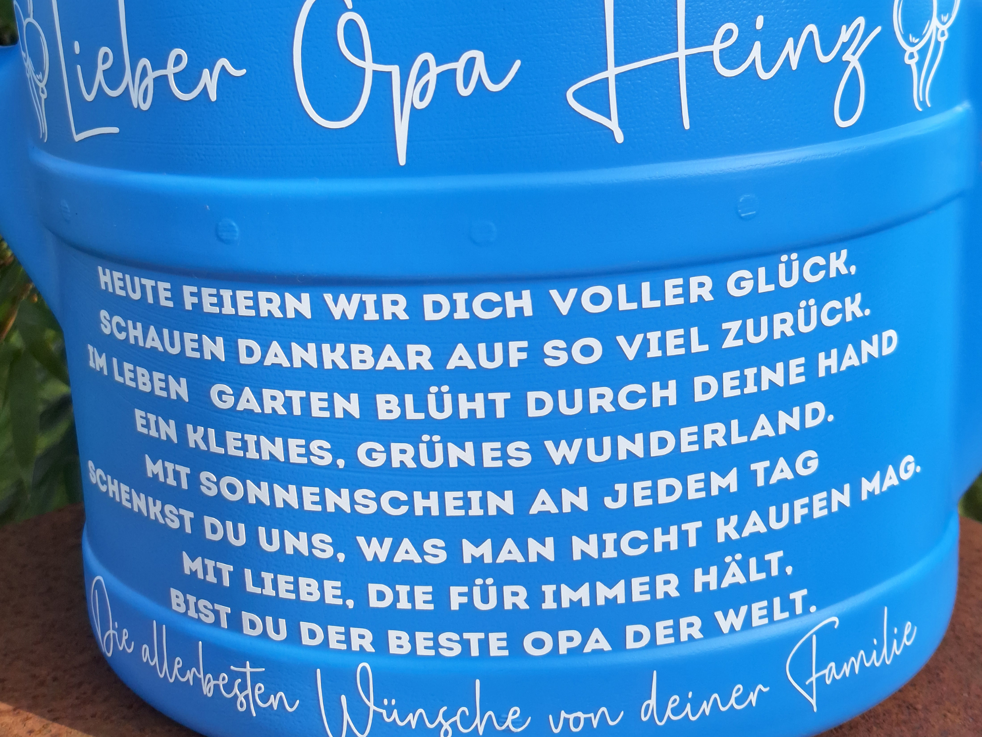 - Verziert wird die Kanne von mir mit einem selbst erstellten Vinylaufkleber mit dem abgebildeten Text und Ihrer gewünschten Personalisierung!